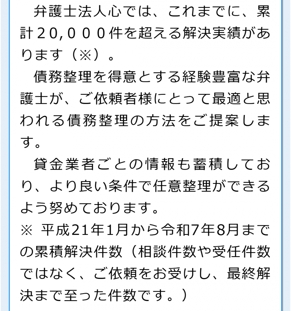 当法人では、任意整理案件を多数取り扱い、解決してきた実績があります。